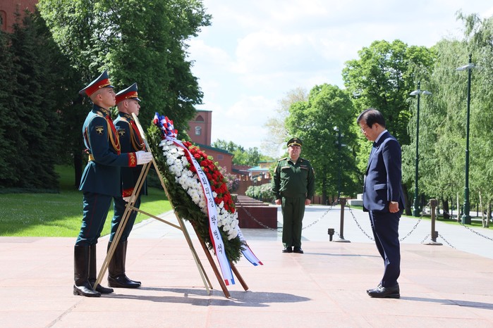 한편 박 의장은 볼로딘 하원의장과의 회동전에 방문단과 함께 모스크바 소재 무명용사의 묘에서 헌화했다. 무명용사의 묘는 제2차 세계대전에서 희생된 군인들을 기리기 위해 1997년 엘친 대통령의 지시로 세워졌다.