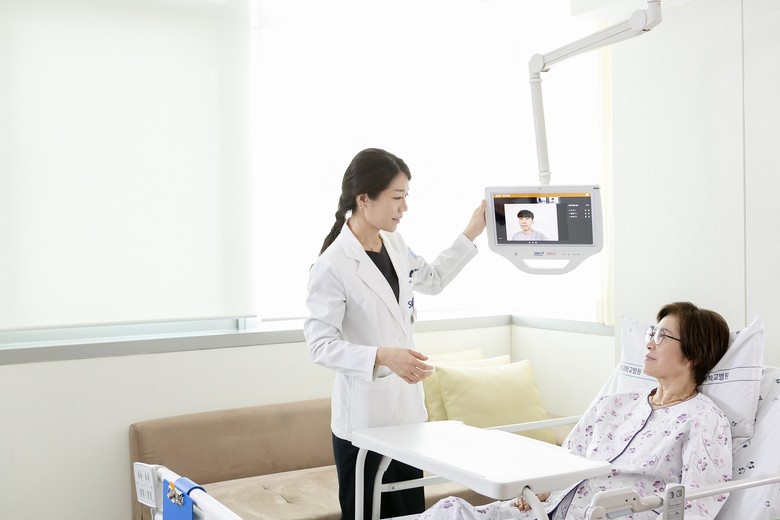 의료진이 환자 정보를 화면에 공유하면 환자는 침상에 설치된 모니터를 통해, 보호자는 병원 방문 필요 없이 화상을 통해 참여할 수 있어 대면 회진을 위해 대기해야 했던 불편을 줄이고, 환자 편의 향상에 기여할 것으로 기대된다.