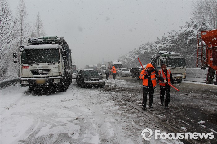한편 고속도로에서 사고 발생시 한국도로공사의 무료 긴급견인서비스(1588-2504)를 이용하는 것도 좋은 방법이다.(서울=포커스뉴스) 19일 오후 12시 48분께 전북 정읍시 북면 남산리 호남고속도로 내장산IC와 태인IC 사이에서 차량 30여대가 추돌하는 사고가 발생했다.<사진제공=정읍소방서> 2016.01.19 포커스포토