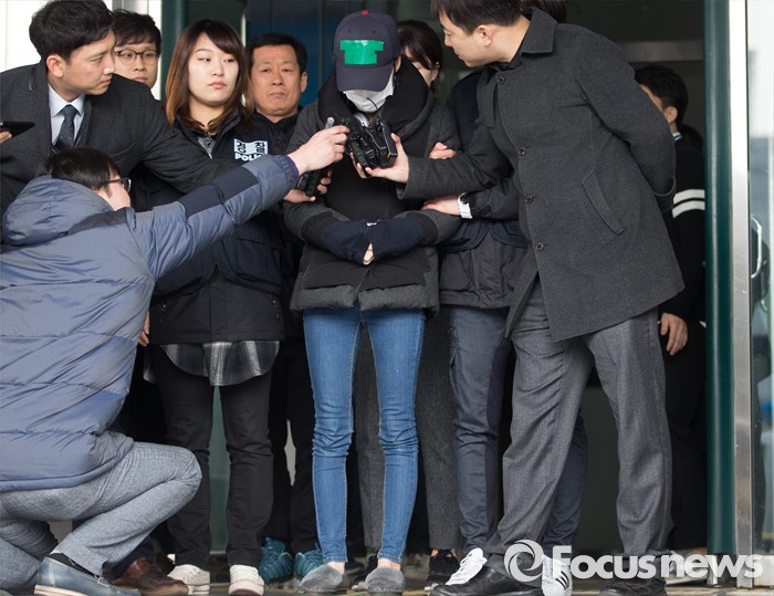 (평택=포커스뉴스) 학대와 무관심 속에 살해당한 뒤 야산에 암매장 된 신원영 군의 계모 김모 씨가 14일 오후 경기도 평택경찰서를 나서던 중 취재진의 질문을 듣고 있다.