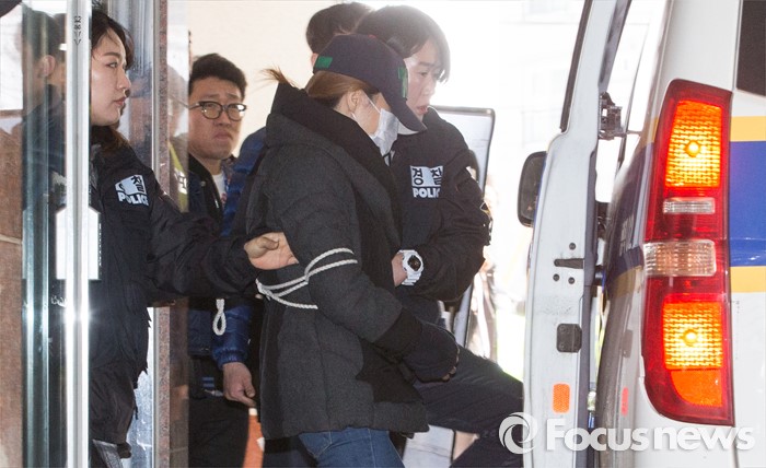 (평택=포커스뉴스) 학대와 무관심 속에 살해당한 신원영 군의 계모 김모 씨가 14일 오후 경기도 평택시 포승읍 자택에서 사건 관련 현장검증을 마치고 나서고 있다.