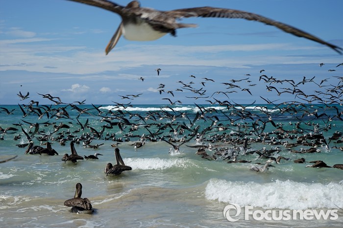 (갈라파고스=포커스뉴스) 사다새로 불리는 대형조류 펠리컨은 갈라파고스에서 쉽게 만날 수있는 새로 물고기를 주로 사냥한다.<사진제공=전수경>