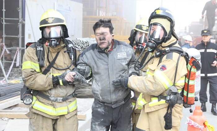 | △ 근로자 구조하는 소방대원들 |
