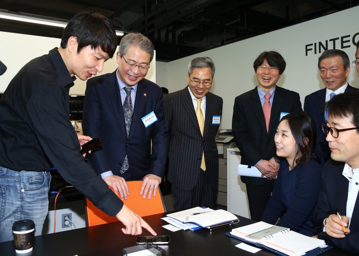 이날 핀테크지원센터가 있는 경기도 판교에는 임종룡 금융위원장과 최재유 미래부 2차관, 정유신 핀테크지원센터장, 유관기관과 금융사, 금융협회, 학계 핀테크 스타트업 대표 등이 모여 1주년 기념행사와 현장간담회가 열렸다.