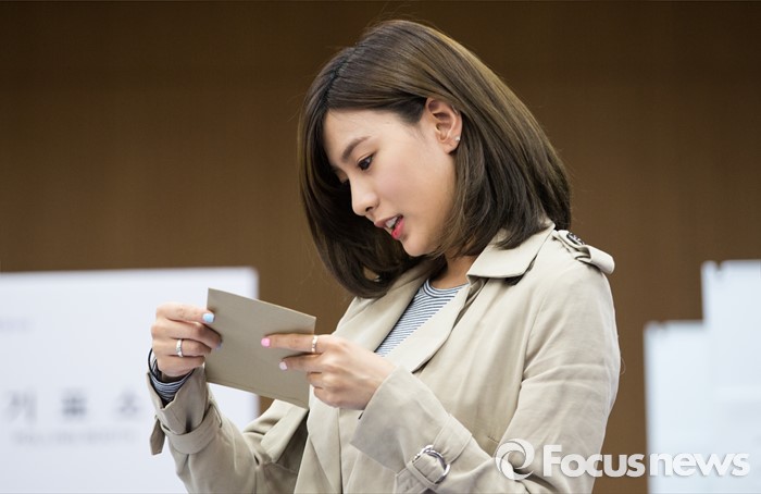 (서울=포커스뉴스) 에이핑크 오하영이 8일 오전 서울 마포구 서교동 주민센터에서 제 20대 총선 사전 투표를 하고 있다.