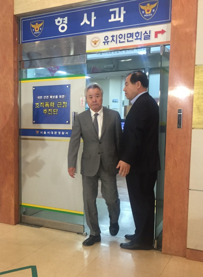 정 회장은 지난 2일 서울 서대문구에 위치한 건물에서 식사를 마치고 나가다 건물 경비원이 출입문을 잠궜다는 이유로 경비원 황모(58)씨를 밀치고 뺨을 두차례 때린 혐의롤 받고 있다.