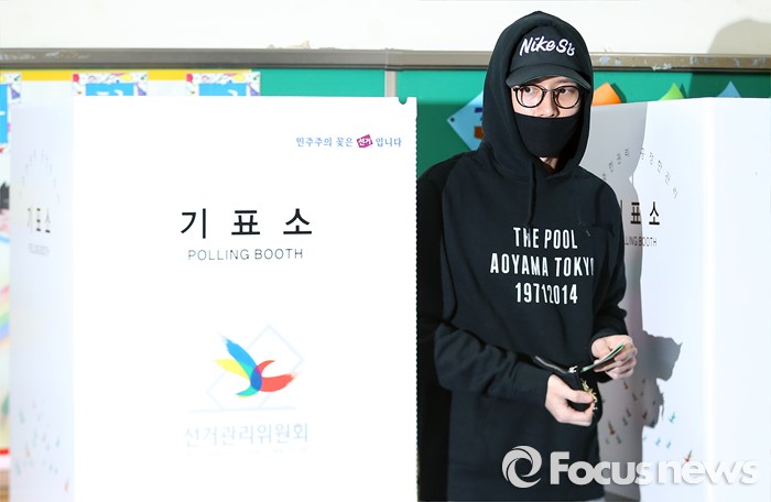 (서울=포커스뉴스) 20대 국회의원 선거일인 13일 오전 서울 용산구 한남초등학교에 마련된 투표소에서 배우 박해진이 투표를 하고 있다.