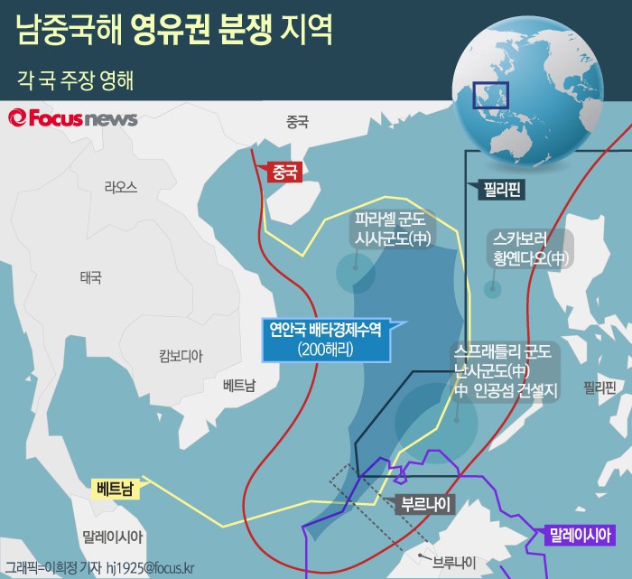 | △ [그래픽] 남중국해 영유권 분쟁지역 |