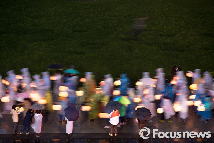 (서울=포커스뉴스) 20일 오후 서울 종로구 광화문 광장에서 부처님오신날(5월 14일)을 앞두고 봉축행사의 일환인 '사사자 삼층석탑등 점등식'이 열리고 있다.