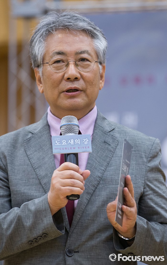 (서울=포커스뉴스) 7일 오후 서울 종로구 세종문화회관에서 열린 오페라 '도요새의 강' 제작발표회에 참석한 이건용 서울시오페라단장이 인사말을 하고 있다.