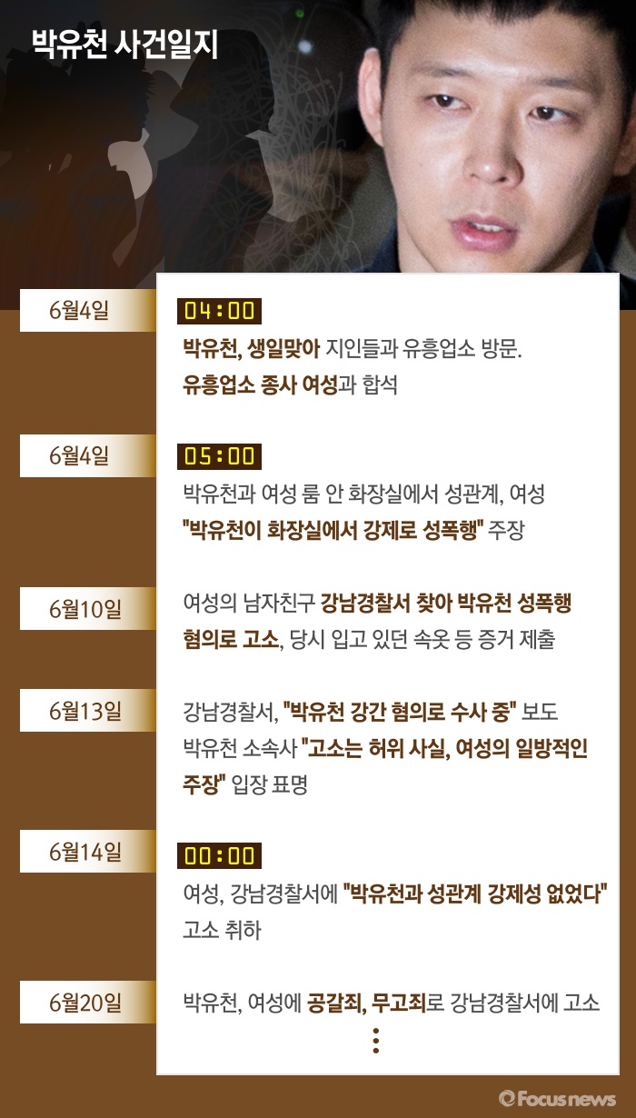(서울=포커스뉴스) 가수 겸 배우 박유천이 성폭행 혐의를 받고 고역을 치르고 있다. 박유천은 유흥업소 종사 여성으로부터 성폭행 고소를 당했다 취하됐다. 하지만 또 다른 피해 주장 여성들의 연이은 고소에 강남경찰서로부터 조사를 받고 있다.