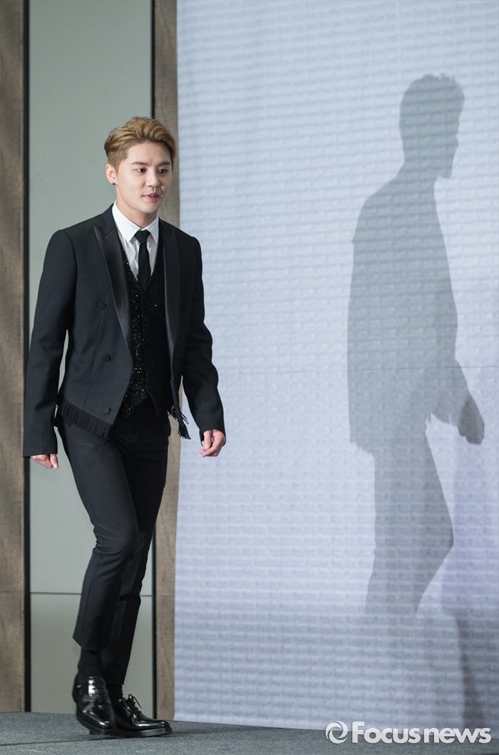 (서울=포커스뉴스) 11일 오후 서울 종로구 포시즌스호텔 서울에서 열린 뮤지컬 '도리안 그레이' 제작발표회에 참석한 배우 김준수가 포토타임을 위해 이동하고 있다.