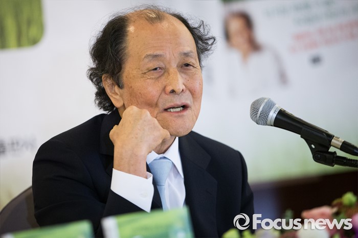 (서울=포커스뉴스) 조정래 소설가가 12일 오전 서울 중구 한국프레스센터에서 '풀꽃도 꽃이다' 출간기념 기자간담회를 하고 있다.