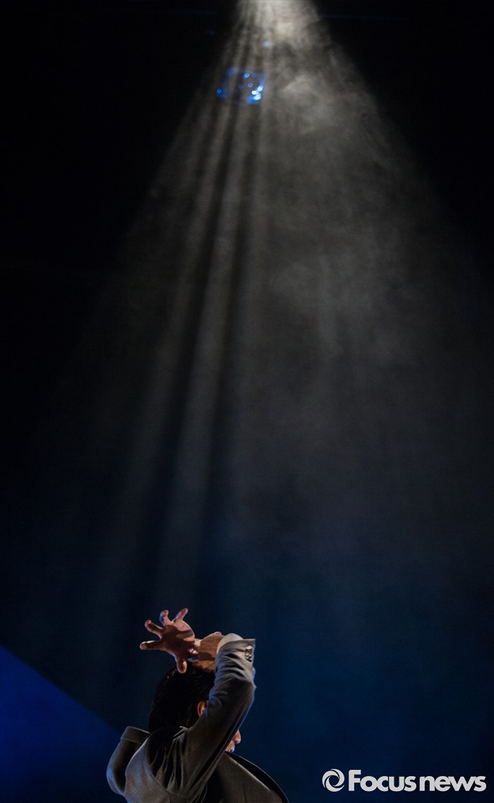 (서울=포커스뉴스) 14일 오후 서울 종로구 동숭아트센터 소극장에서 열린 연극 '코펜하겐' 프레스콜에 참여한 배우 서상원이 주요장면을 시연하고 있다.