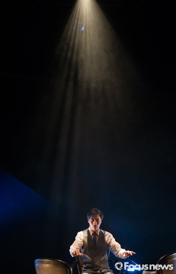 (서울=포커스뉴스) 14일 오후 서울 종로구 동숭아트센터 소극장에서 열린 연극 '코펜하겐' 프레스콜에 참여한 배우 서상원이 주요장면을 시연하고 있다.
