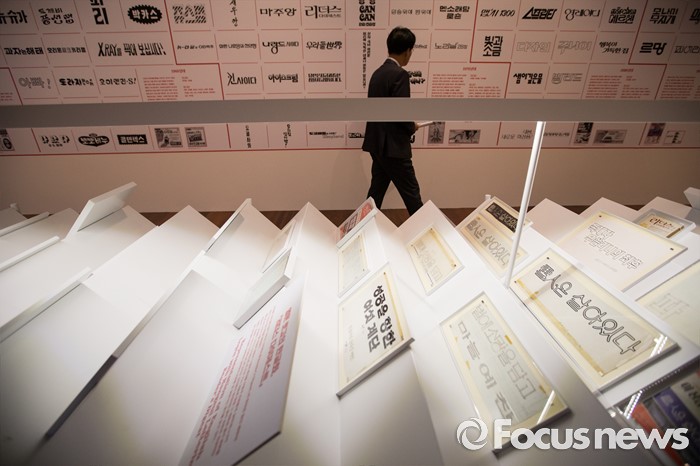 (서울=포커스뉴스) 28일 오후 서울 용산구 국립한글박물관에서 열린 기획특별전 '광고 언어의 힘' 언론 간담회에서 참석자들이 다양한 광고를 살펴보고 있다. 개화기부터 현재까지 광고의 130여년 역사를 우리말과 우리글의 관점에서 풀어낸 이 기획특별전은 7월 28일부터 11월 27일까지 열린다.