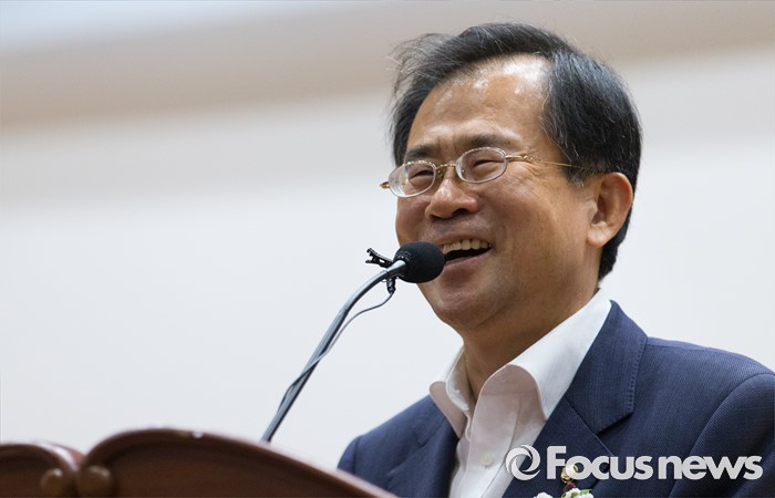(서울=포커스뉴스) 윤영일 국민의당 의원이 8일 오후 서울 여의도 국회 의원회관에서 열린 공간정보 국외 반출 관련 정책 토론회에 참석해 환영사 중 환한 미소를 짓고 있다.