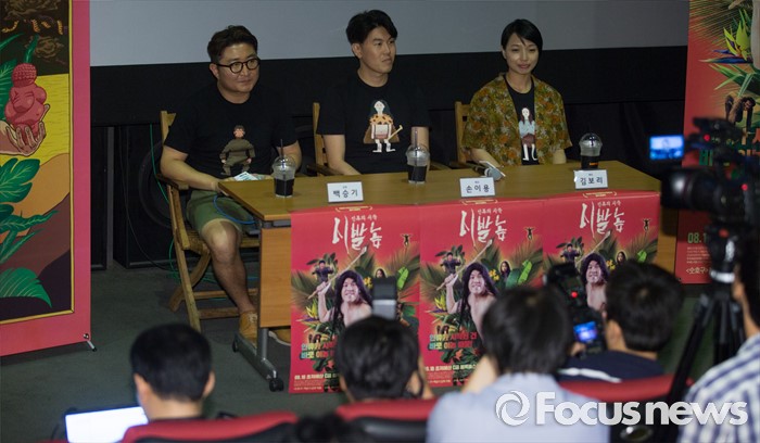 (서울=포커스뉴스) 9일 오후 서울 동작구 아트나인에서 열린 영화 '시발, 놈 : 인류의 시작' 언론시사회에 참석한 배우