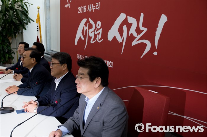 (서울=포커스뉴스) 이정현 새누리당 대표가 11일 오전 서울 여의도 국회에서 열린 최고위원회의에 참석해 취재진에게 지도부를 비롯한 최고위원의 모두발언 공개 없이 비공개 회의로 전환한다고 설명 하고 있다.