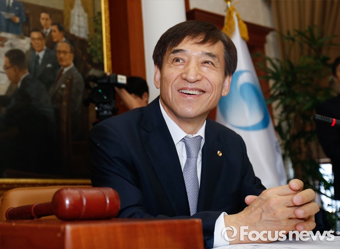 (서울=포커스뉴스) 11일 오전 서울 중구 한국은행에서 열린 제16차 금융통화위원회에 참석한 이주열 한국은행 총재가 미소 짓고 있다.