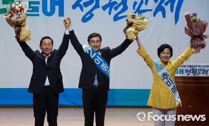 김 후보는 "왜 친문과 비문, 주류와 비주류를 따지느냐. 왜 보수의 덫에서 헤어 나오지 못하느냐"며 "선의의 경쟁과 단합으로 승리를 만들어야 한다"고 주장했다.